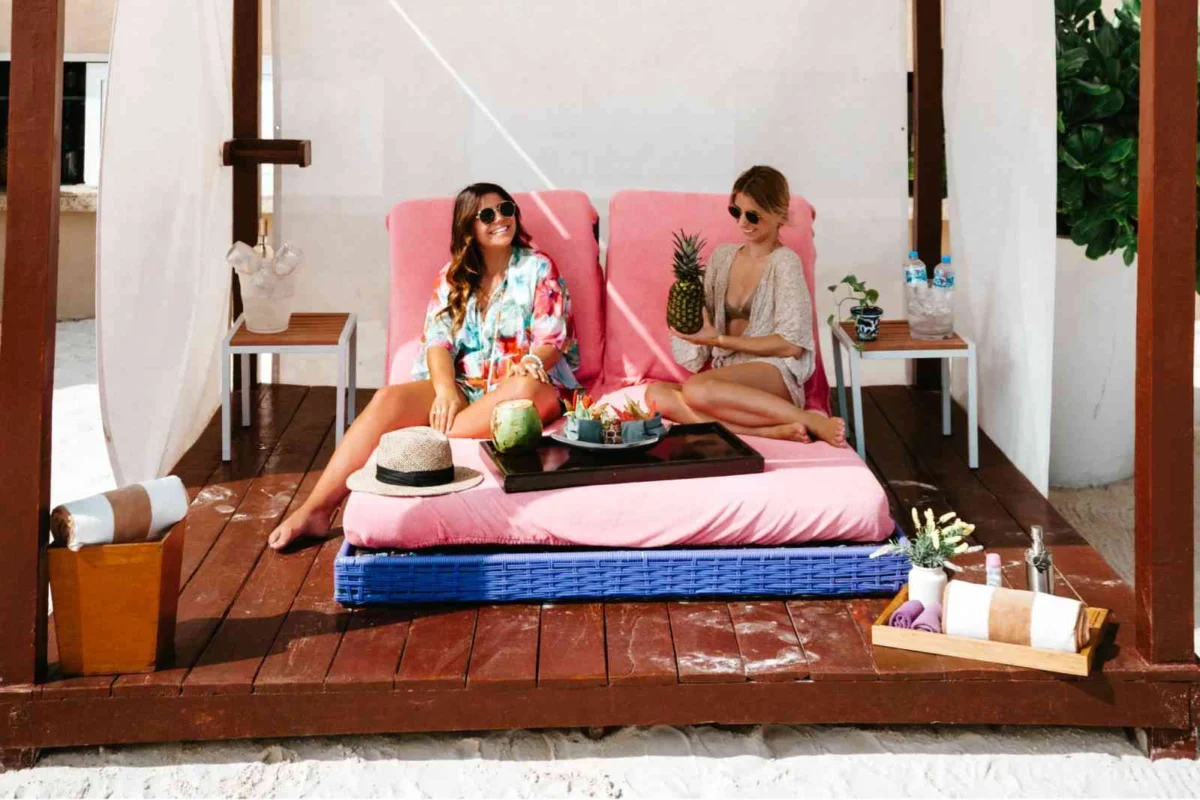 - Ceremony seating for 32 guests, including tropical pillows